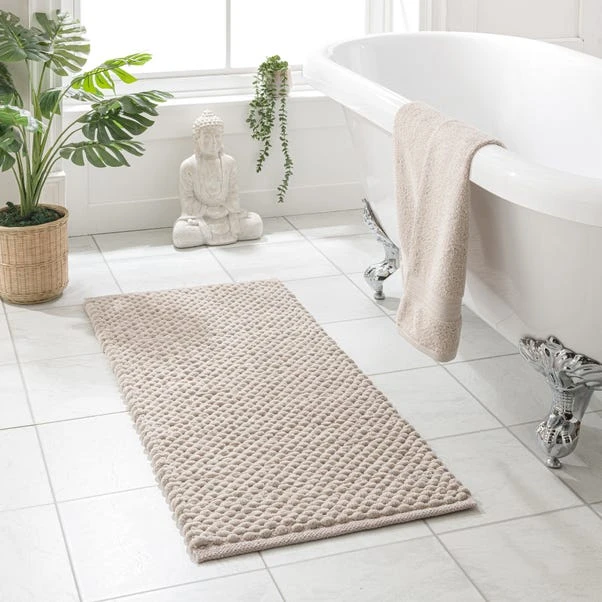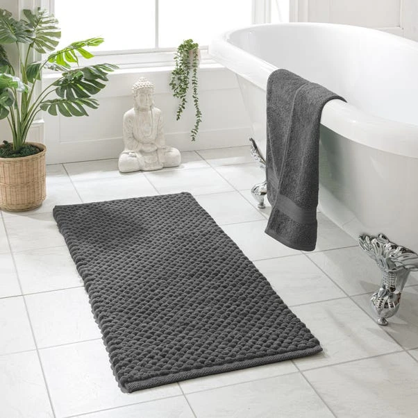 Hand-woven using super soft chenille yarns, our extra large pebble bath mat has a modern pom-pom bobble texture which feels lavishly soft under foot letting you start and end your day with a sumptuous spa feeling. It’s easy to clean by simply popping in the washing machine and letting it line dry, maintaining it’s soft feel. Choose from a wide range of colours to suit your style and bathroom interior for a sleek bathroom look.