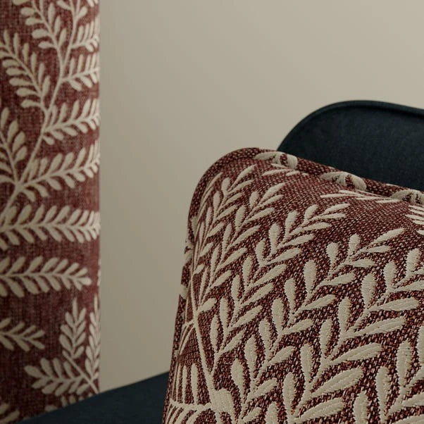 Crafted from woven fabric with a beautiful jacquard design featuring a fern leaf pattern, this pair of pencil pleat curtains are complete with a cream lining. Matching cushion and tiebacks are available.