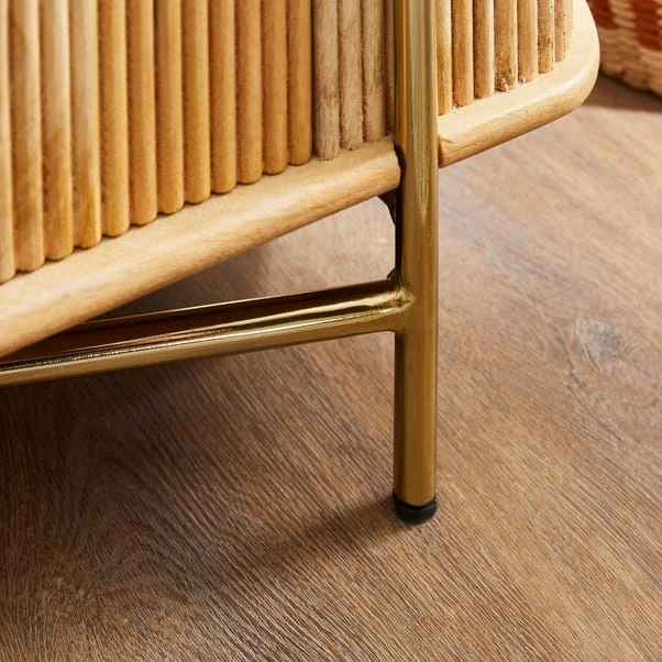 Revel in the beauty of the fluted design and the sophistication of the real marble top that graces this TV unit. Its accent metal legs and handles add a modern touch, creating a perfect balance between contemporary style and luxury. Designed to accommodate your entertainment needs while showcasing impeccable craftsmanship, this TV unit is a statement of elegance and functionality, elevating the aesthetic appeal of your living area with its refined design.