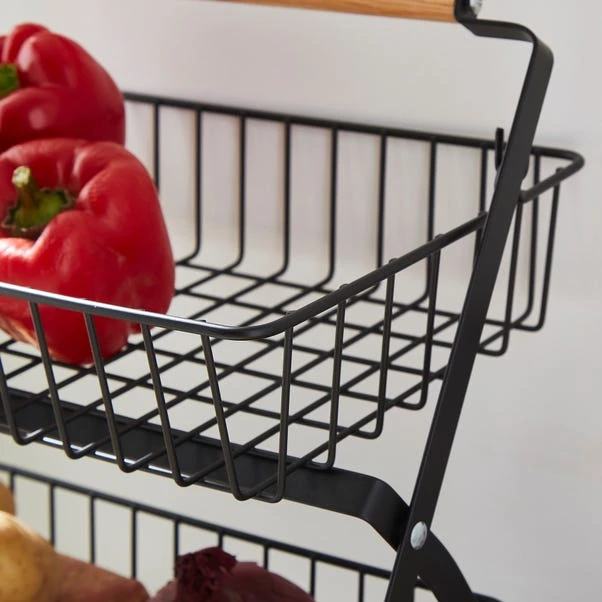 Maximize your kitchen space with the Black Wire 2 Tier Storage. Made from 100% iron, this storage solution is both sturdy and practical. Its black matte finish adds a sleek touch to any space, while its easy assembly makes setup a breeze. Whether in the kitchen or bathroom, this storage basket adds charm and functionality to any room. Made from responsibly sourced, FSC-certified acacia. By choosing this product, you are supporting responsible management of the world’s forests.