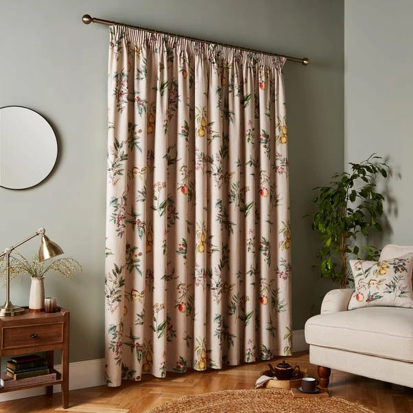 Transport yourself to the idyllic charm of a sun-drenched fruit orchard with our Botanical Orchard printed curtains. These curtains add a touch of rustic elegance to your home, whether adorning your kitchen, dining room, or breakfast nook. Evoking the serenity and abundance of the countryside, creating an inviting and tranquil oasis. Coordinating cushion available to purchase separately for a complete look.