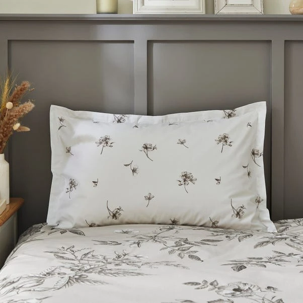 Introducing the Bridget Etched Floral Bedding range, where delicate blooms come to life in beautifully rendered sketches. This charming design is adorned with hand-drawn floral motifs, capturing the essence of botanical beauty and natural, timeless charm. Crafted from 100% cotton for natural breathability and durability, our Oxford-style pillowcase promises both comfort and style. Coordinate with matching bedding and curtains to complete the look.