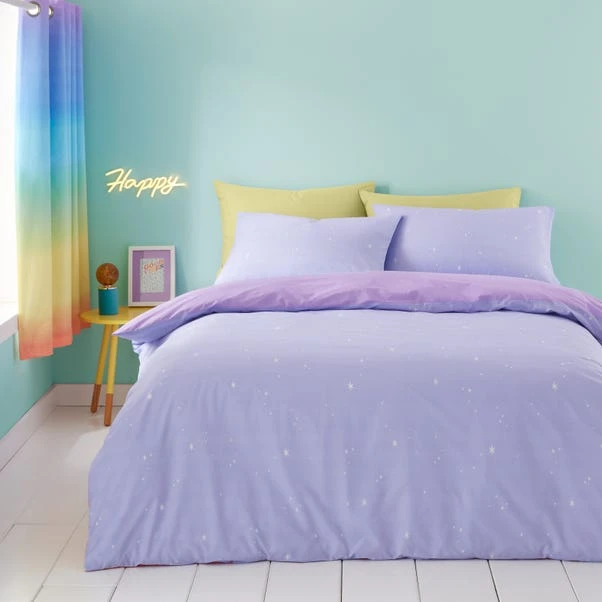 With its bright rainbow design, this bedding set is perfect for adding a splash of style and colour to your bedroom. Made from durable and easy-care polycotton, this set is irresistibly comfortable; offers two looks in one; and is complete with a secure button fastening.