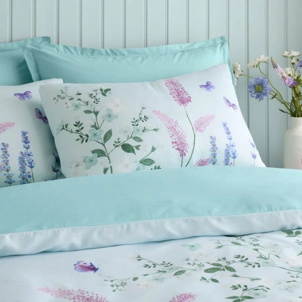 Bring a breath of fresh air into your bedroom with the Butterfly Fields Duvet Cover & Pillowcase Set. Featuring a floral design with floating butterflies, and a crisp green reverse, this set is ready to add new life to your space. The 100% cotton sateen finish gives a naturally soft and smooth feel and is breathable for year-round use. Easy to care for, this set is machine washable and suitable for tumble drying at low temperatures. The button fastening ensures minimal fuss when it’s time to change the sheets, meaning you’ll soon be enjoying a calm and restful sleep.