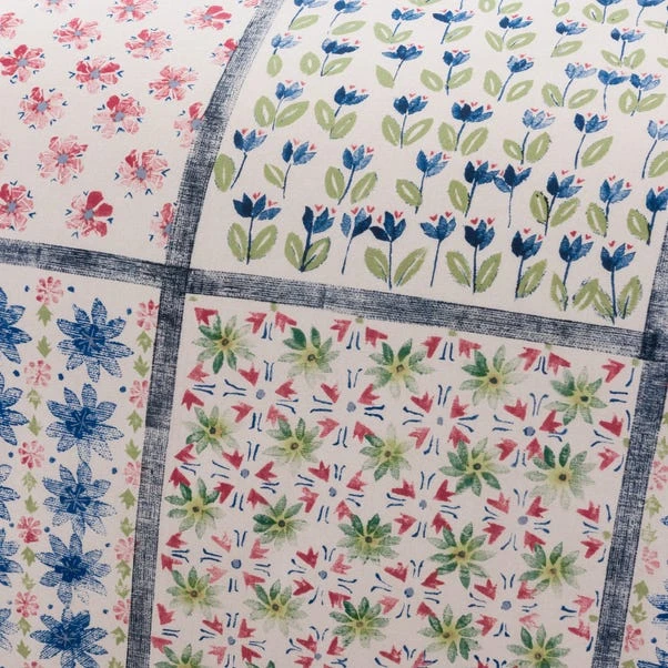 A pretty patchwork duvet cover and pillowcase set designed to add character to any home. Featuring a bold mix of pattern and style in a combination of greens, yellows, and blues on one side, while a green and blue tulip pattern decorates the other, allowing you to switch up your bedding whenever you desire. Made from Better Cotton, the Celeste bedding set is fully machine washable and is complete with a secure button closure to give you an uninterrupted night sleep.