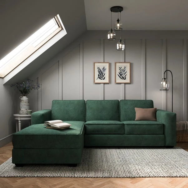 Designed for modern living, its luxurious tonal chenille upholstery offers a plush, textured feel while blending effortlessly with a variety of interior styles. The spacious corner design provides ample seating, ideal for family gatherings or lounging in ultimate comfort. The integrated chaise adds an extra layer of relaxation, making it the perfect spot to unwind.