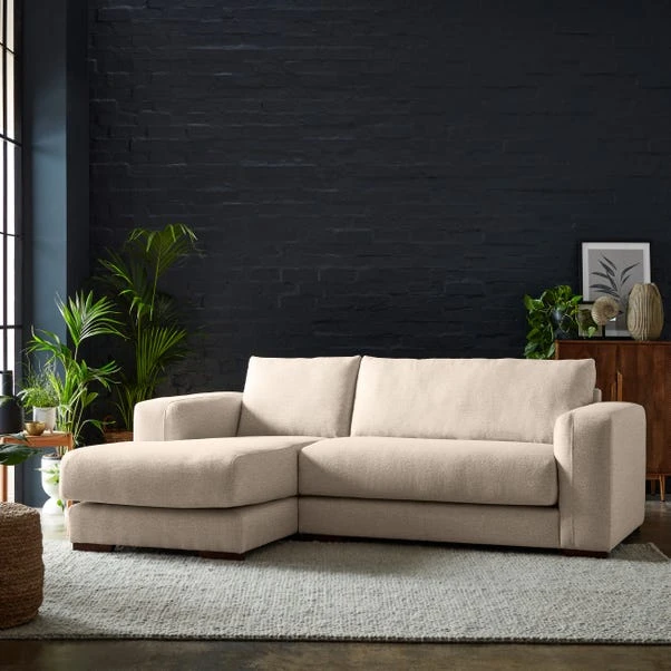 Ready to take lounging to a whole new level? Say hello to the Clayton Cosy Weave Corner Chaise. It’s got all the features you love, plus the added bonus of LHF & RHF options. The large square arm brings a touch of grandeur to your space, while the generous fibre-wrapped foam seat interior and fibre back cushions provide the perfect balance of support and cosiness. And don’t forget the wooden foot that adds a dash of elegance to this fabulous piece. With the soft cosy weave fabric, made from 100% recycled polyester, it’s time to kick back, put your feet up, and let the world melt away.