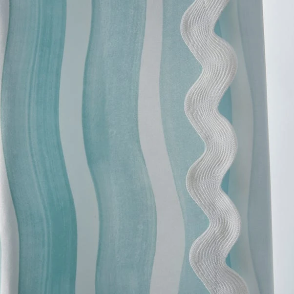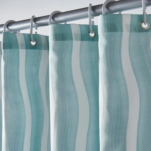 Bring shades of soft turquoise to your bathroom with this Coastal Breeze Wave Edge Stripe shower curtain. The white striped design is accented by a wave edge detail and is ideal for achieving a coastal feel in your space whilst ensuring the floor stays perfectly dry. The curtain is machine washable to effortlessly keep it looking fresh.