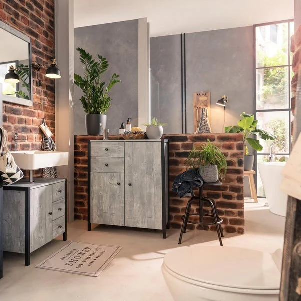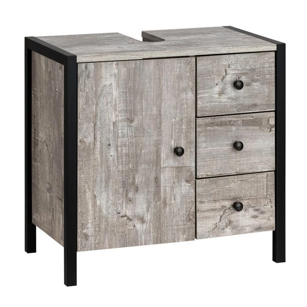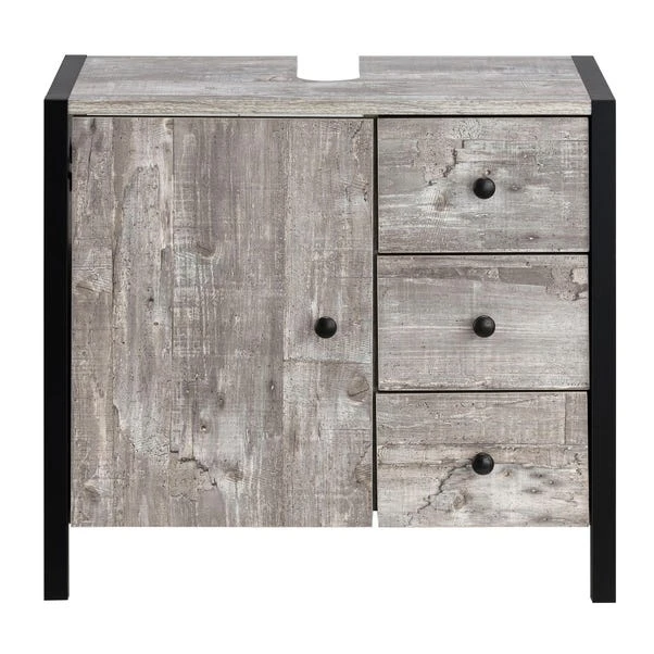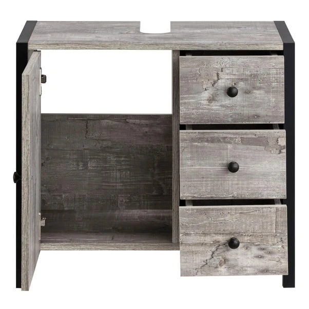 This unit is a marvel of functionality, featuring a single door and three spacious drawers, each adorned with sleek metal handles. These drawers provide discreet yet easily accessible storage solutions for your bathroom essentials, ensuring a clutter-free space without compromising accessibility. Crafted from resilient and enduring materials, this unit guarantees durability and longevity, promising years of reliable use. The concrete effect finish not only adds a contemporary flair but also accentuates the industrial charm, making it a standout addition to your bathroom ensemble.