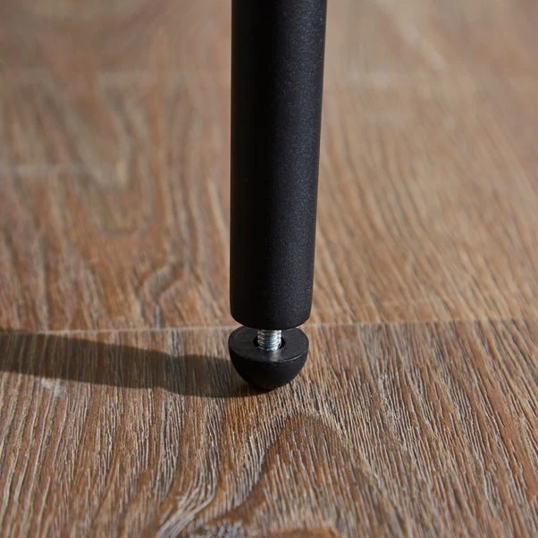 The sleek tabletop design perfectly complements a modern interior, while the round shape fosters an intimate dining experience. The chairs feature a generously proportioned, foam-filled seat for added comfort. Inspired by modern art deco designs, this stylish chair is crafted with a curved back and black finished metal legs to add a contemporary touch.