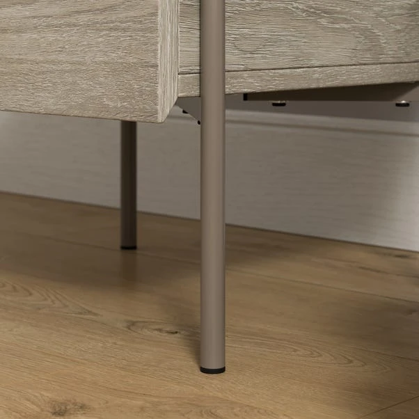 This bedside tables’ sleek design, crafted with precision, offers a single drawer for discreet storage, keeping bedtime essentials within easy reach. The tabletop provides ample space for a lamp, clock, or decorative items, adding a touch of sophistication to your bedside. The clean lines and quality craftsmanship of this bedside table elevates any bedroom decor, seamlessly blending style with practicality for a refined and organised sleeping space.