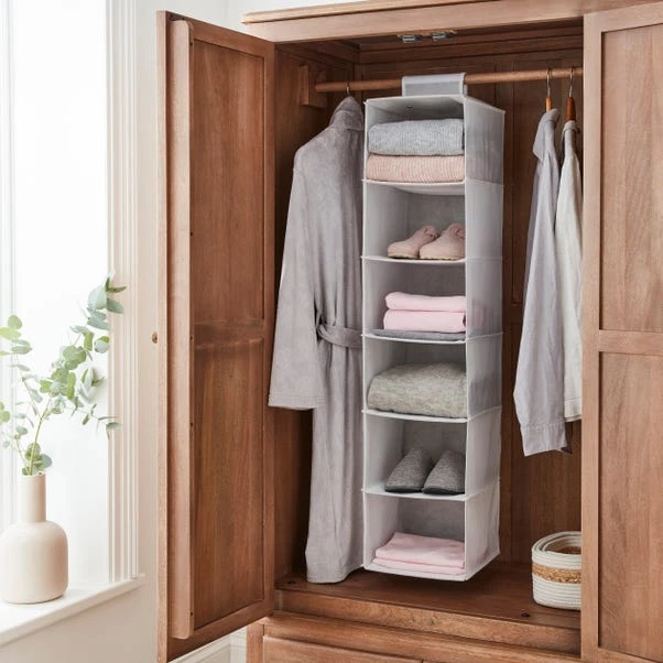 Meet your new storage essential – the Fabric Hanging Organiser. Its plain design effortlessly complements any home decor, providing a seamless storage solution for your belongings. Save valuable floor space by hanging it up – and discover six thoughtfully crafted compartments that cater to your storage needs, accommodating everything from shoes and clothes to bed linens and towels.