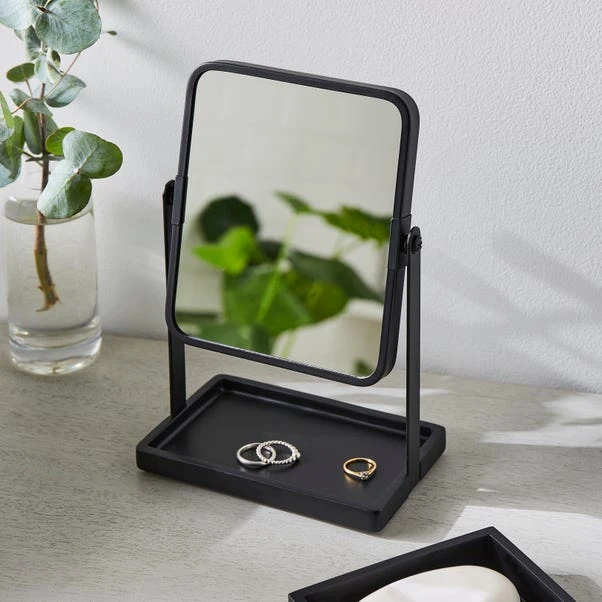 This freestanding mirror is a great space-saving mirror for the bathroom or dressing table. The square shape and black finish are ideal for a modern or industrial look, and the storage tray beneath is a great addition to keep smaller items to hand. The mirror can be adjusted for the perfect angle to get ready.