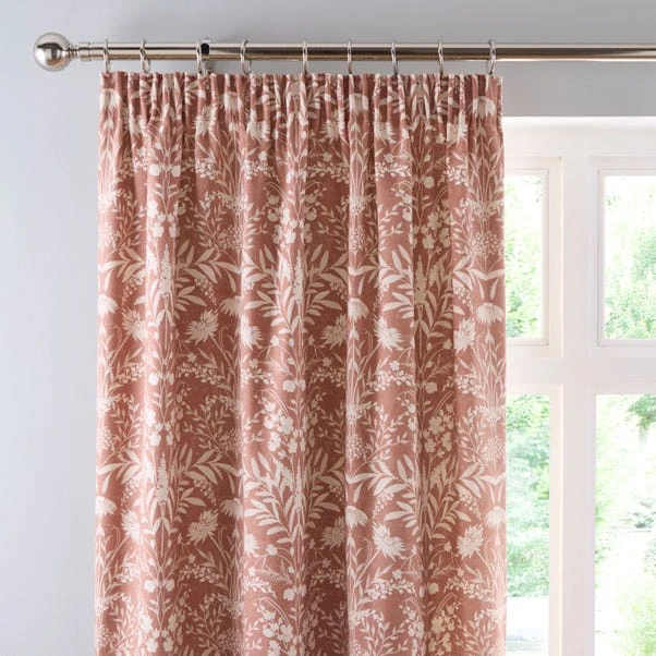 Combining a beautiful floral pattern with a calming colour palette these Freya pencil pleat curtains will add a sophisticated cosy feel to any room setting. The curtains are fully lined and are printed on 100% BCI cotton. The pencil pleat header is suitable for both use with a pole and track.
