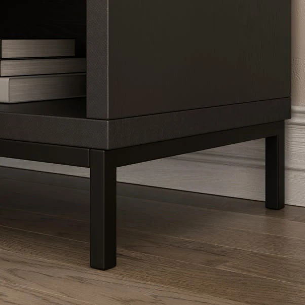 Exclusively crafted by Dunelm, this unit features a large open storage space, perfect for housing media devices, gaming consoles, or decorative items. With two assembly options, it offers flexibility to suit your needs, while the sturdy metal legs provide stability and a contemporary edge.