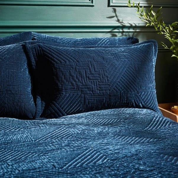 Transform your bedroom with the striking Haisley range, featuring a mesmerising geometric pattern. Its easy-care fabric ensures simple maintenance, with a quick machine wash restoring its pristine condition. Available in a range of vibrant colors, this set integrates seamlessly with your decor. The pinsonic velvet design adds a luxurious touch, making your bed a focal point of modern sophistication. Indulge in the ultimate comfort and style by pairing with coordinating bedding.