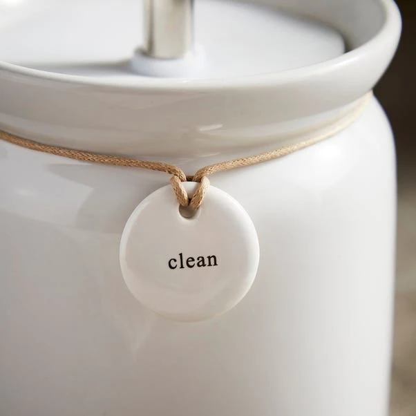 Crafted from ceramic with a stainless steel handle, this white toilet brush holder features a pendant tag trim.