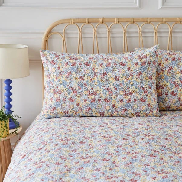 The Hannah Retro bedding range illustrates a ditsy floral design with a delicate feminine feel. This delightful collection captures the essence of vintage charm, perfect for creating a vibrant atmosphere. Woven from 100% cotton, this bedding is naturally soft, breathable, and comfortably smooth, suitable for year-round use. The reversible design adds versatility, and the set includes a duvet cover and pillowcase with a button closure. Coordinating items are available.