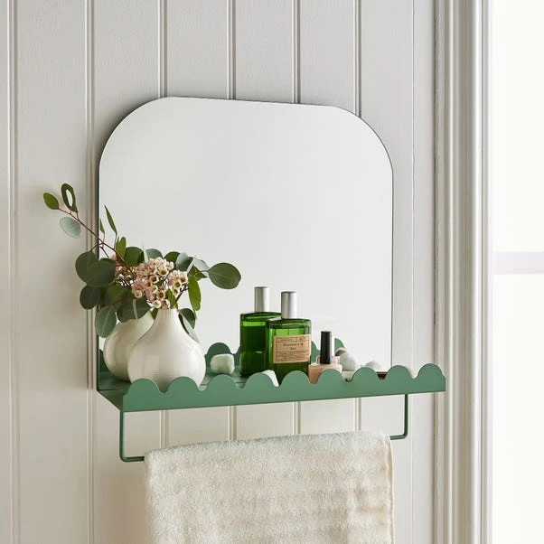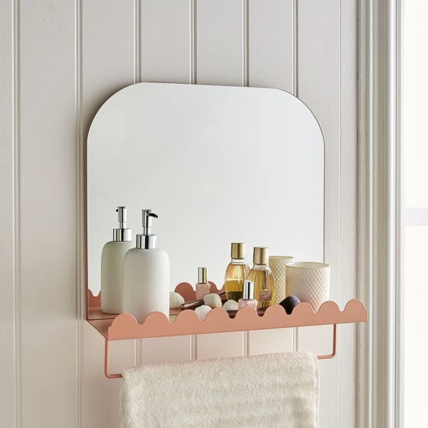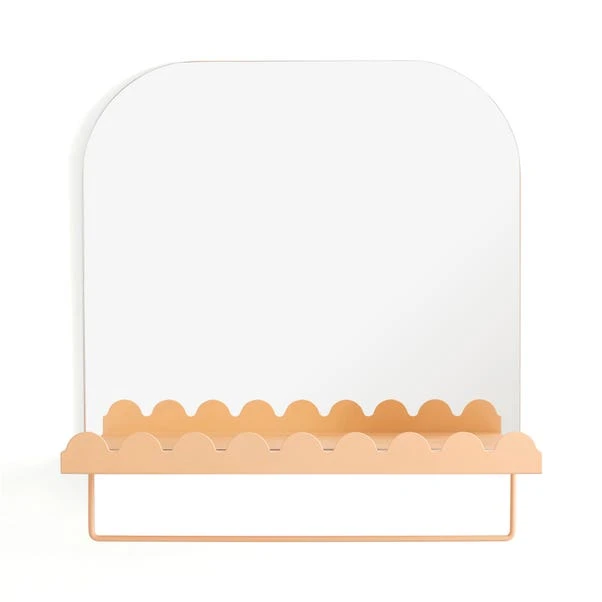 Boasting a whimsical scalloped design, perfect for adding a touch of industrial bohemian chic to your home, this mirror from the Heart and Soul range makes for an excellent addition to any bathroom. Sporting a durable metal shelf with a powder coating ensuring the piece will withstand use in damp bathroom conditions making it perfect for displaying bathroom items and decorations.