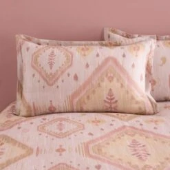 Add elegance to your bedroom with the Java Ikat Oxford Pillowcase in Blush. This pillowcase showcases a beautiful Ikat print in soft and soothing blush tones, infusing your space with style and colour. Made from 100% cotton with a 180 thread count, it is naturally soft, breathable, and comfortably smooth, ideal for all seasons. The reversible design offers versatility, while the Oxford style and button closures add a refined touch. Machine washable for convenience, this pillowcase pairs perfectly with coordinating bedding sets for a chic and inviting atmosphere.