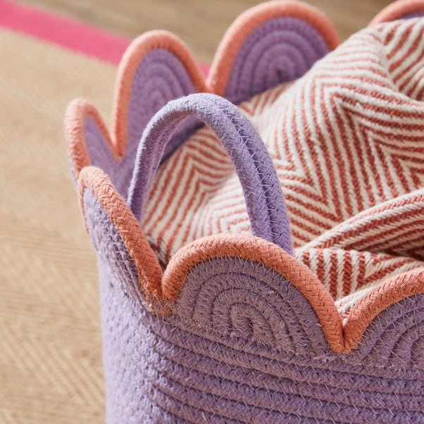 Bring a splash of colour to your space with this versatile fabric rope basket, with a beautiful scalloped edge. Available in a choice of colours, this basket has a large capacity and is perfect for keeping items together and organised. Whether it’s games and toys, craft supplies or cuddly toys, the possibilities are endless.
