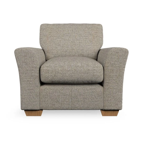 This armchair’s soft, swept armrests and refined stitching details give it an elegant look. The fibre-filled back cushion offers outstanding support, while the seat can be customised with either foam or ‘Qualofill Blue’ fibre filling. Supported by durable serpentine springs and stylish hardwood legs in two finishes, this armchair is both supportive and stylish, making it a perfect accent for any living space.