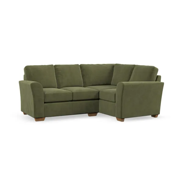 This corner sofa offers a stylish solution with its understated design and elegant swept arms. Generous, fibre-filled back cushions deliver superior comfort and support. Personalise your seating with a choice of foam or eco-friendly ‘Qualofill Blue’ fibre filling. Supported by serpentine springs and solid hardwood legs available in two finishes, this corner sofa blends comfort, durability, and refined design to enhance any living area.