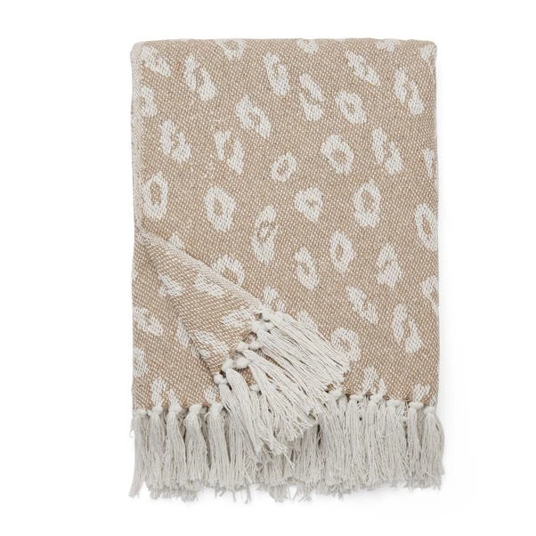 Enjoy a touch of luxury in your home with this stylish Leopard Print Woven Throw, designed to bring a touch of wild elegance to your home decor. Crafted with a captivating leopard print woven design, this throw is the perfect statement piece to elevate any room. The tasselled edge adds texture and flair, enhancing the overall aesthetic. Handwoven from a blend of recycled polyester and cotton fibres, it not only adds a soft touch to your space but also contributes to sustainable living. Plus, its machine washable design ensures easy care and maintenance, making it a practical and stylish addition to your home.