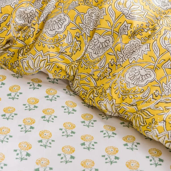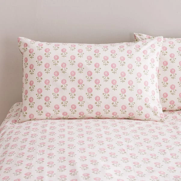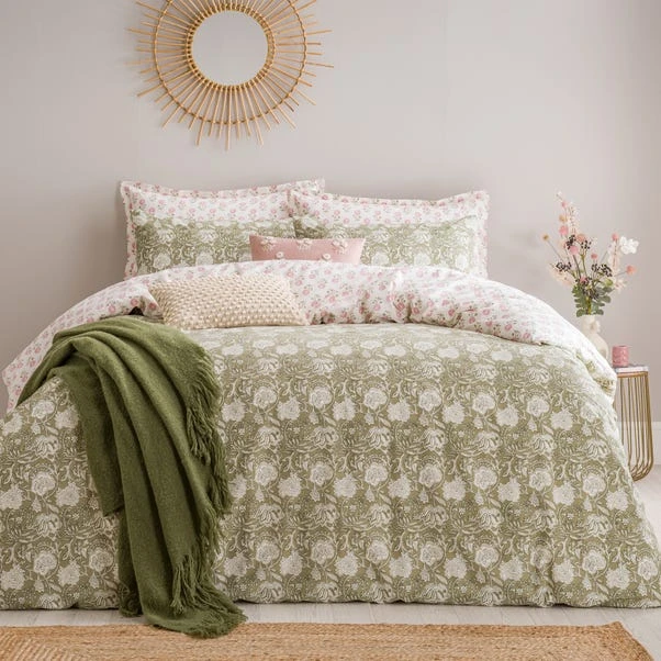 Create a cosy retreat with the Lizzy Tile Duvet Cover and Pillowcase Set. This set features a beautiful eclectic style print in soft green tones, with a woodblock design that lends a homespun feel. The reverse side reveals a charming ditsy floral pattern in lovely pink hues, offering versatile styling options. Made from 100% cotton, this bedding is naturally soft, breathable, and comfortably smooth, perfect for all seasons. The button closure ensures a secure fit, while the machine washable fabric offers easy care. Coordinating items are available to complete the look.
