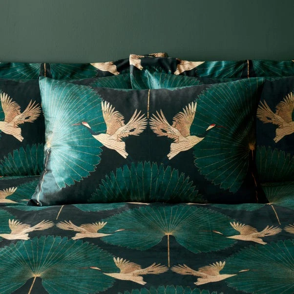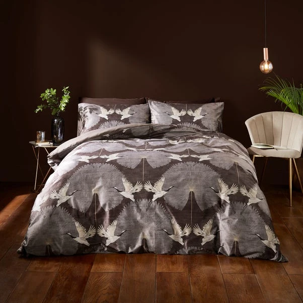 Elegant cranes fly across a rich backdrop, helping them to shine. This design is gorgeous and perfect for adding a luxurious styling to your bedroom. Crafted from a polyester material, the set is easy to care for and is fully machine washable. The duvet cover set has been finished with a button closure which helps secure the cover around the duvet whilst in use.