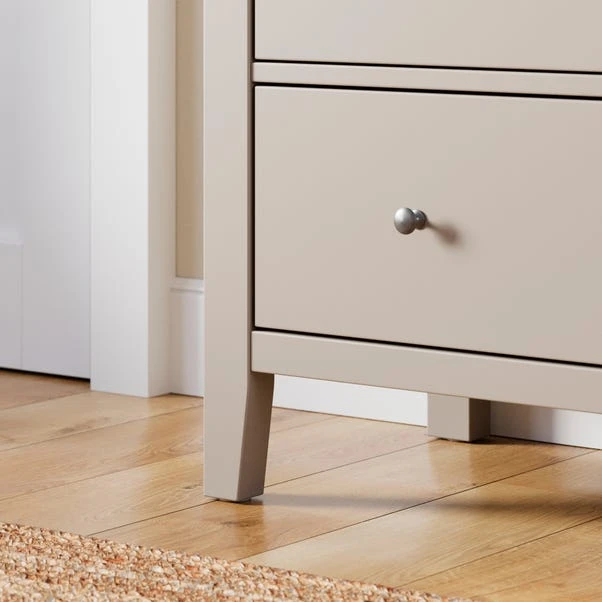 Designed with a sleek and modern look, this chest features five spacious drawers that provide ample room for clothing, accessories, or other essentials, helping to keep your space neat and organised. The addition of an open shelf offers a versatile display area, perfect for showcasing decorative items, storing books, or housing electronics such as a media box or speaker.