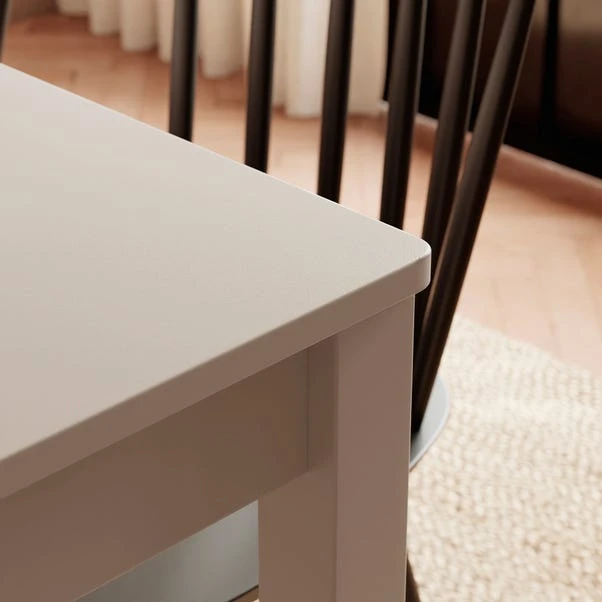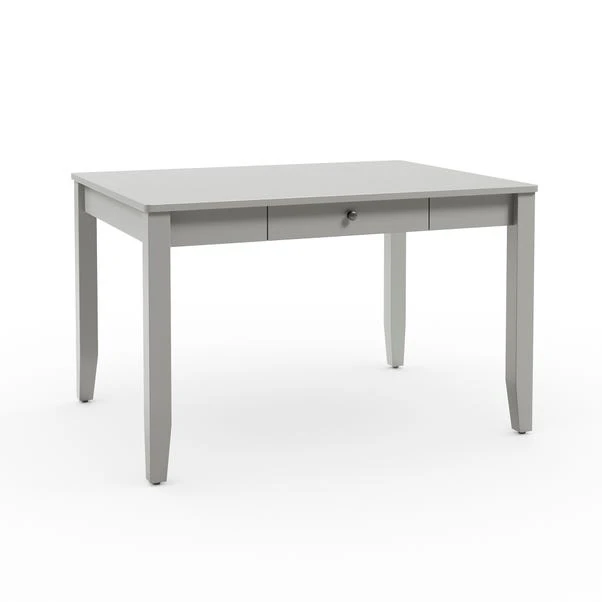 The Lynton compact rectangular dining table, available in grey, natural, and white, is ideal for compact living spaces. Its streamlined design allows it to fit seamlessly into smaller dining areas without overwhelming the room. Crafted with a sturdy construction and a timeless aesthetic, this table provides a reliable surface for everyday meals while maintaining a sense of openness in the space.