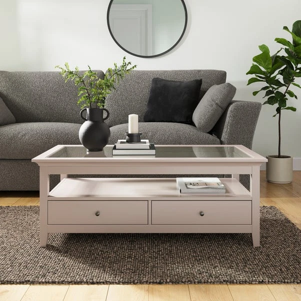 The Lynton Rectangle Coffee Table brings a touch of modern elegance to any living space. Featuring a sleek glass tabletop, it adds an airy, sophisticated feel while keeping your room light and open. Two spacious drawers provide handy storage for remotes, magazines, and everyday essentials, keeping your space neat and organised.