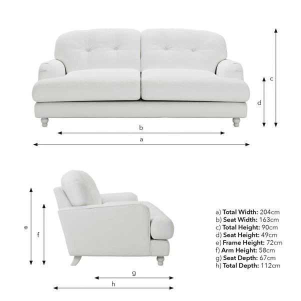 Seat Dimensions: H 49cm x W 163cm x D 67cm