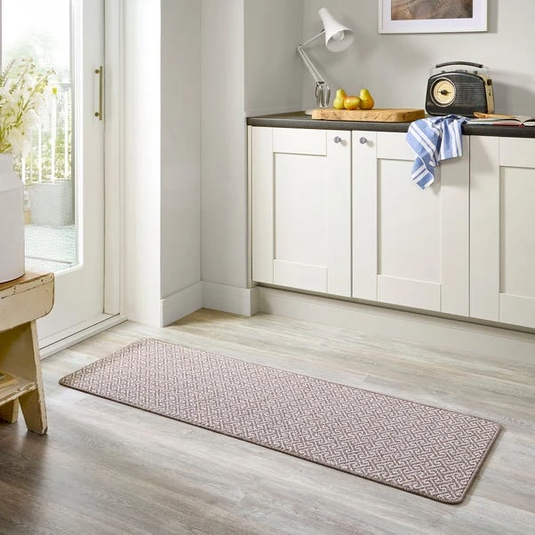 Add style to your home with the Marvel Boucle Greek Key Washable Runner. It doesn’t just look good – but works hard, too. With an eye-catching pattern, a textured soft pile for a cosy feel underfoot, and an anti-slip backing to keep it in place, it’s as practical as it is pretty.