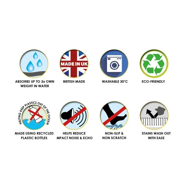 Stylishly designed to keep your flooring dirt free, this mat is made in the UK. With the ability to absorb up to 3 times its own weight in water, this mat partially made from recycled materials and features anti-slip and scratch resistant properties, whilst offering noise and echo insulation. It can be machine washed to help remove stains with ease.