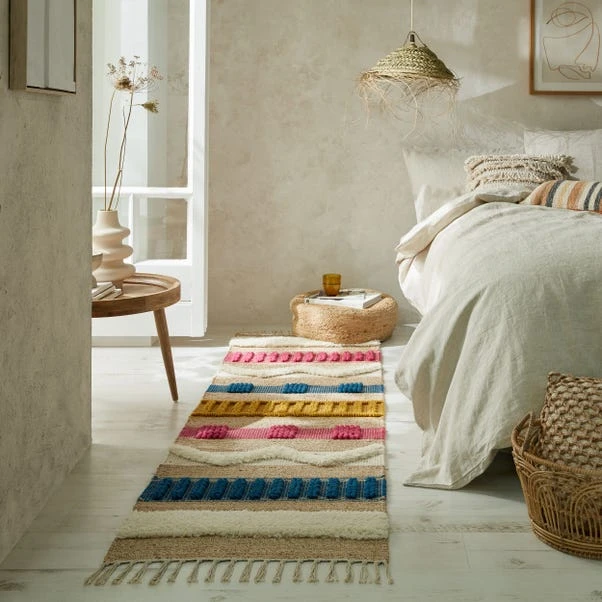 The Medina Jute runner uses a unique blend of durable jute, warm wool and soft cotton, to create a design full of texture, perfect for any space. Hand-crafted by skilled rug artisans and hand-finished with a tasseled effect and tufted wool look. The Medina Jute Rug combines a fun design with simple Scandi shades for maximum style impact. We love using Jute designs to add texture to any room of the house.