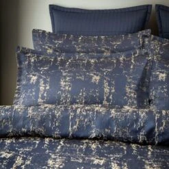 The Mineral Abstract bedding collection brings a dramatic yet elegant focal point to your bedroom with its stunning abstract pattern in deep navy and shimmering gold. Inspired by natural mineral textures, this bedding set adds a touch of luxury to your space. Made from easy-care polyester, it is soft, durable, and resistant to creasing.