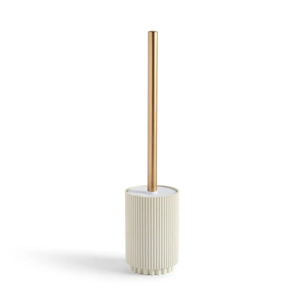 Sporting a neutral colourway, a handle with a bronze finish and a ribbed design, this toilet brush and holder is a perfect styling option for any bathroom. Part of the Modern Luxe collection, this piece can be paired with matching items for a streamlined bathroom aesthetic.