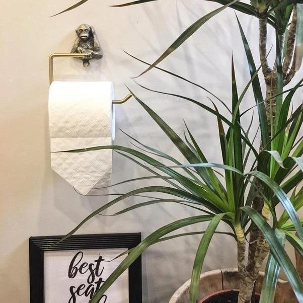 With a brass gold effect finish, this toilet roll holder has a unique design featuring a cute monkey that brings a touch of the tropical to your bathroom.