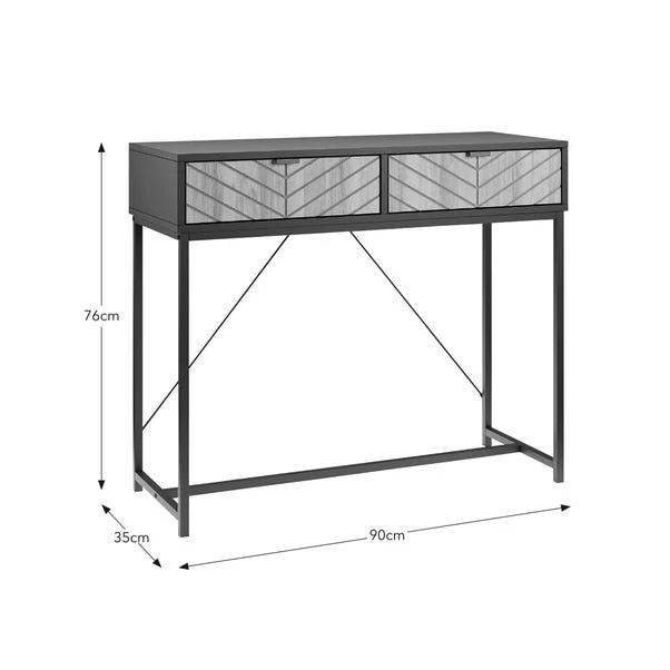 Bringing a sleek and compact design to your hallway or living room décor, the Nixon Console Table is the perfect piece of furniture to elevate a modern and minimalist style. Featuring two convenient drawers to store away any clutter or to keep your essentials nearby, the drawers are decorated with a simple but stunning groove detailing, adding a touch of depth to the overall design. The metal handles are sturdy and add a contemporary while the powder-coated metal leg not only provides stability but also adds a modern touch to the design. Combine with other pieces from the Nixon range for coordinated furniture across your living space.