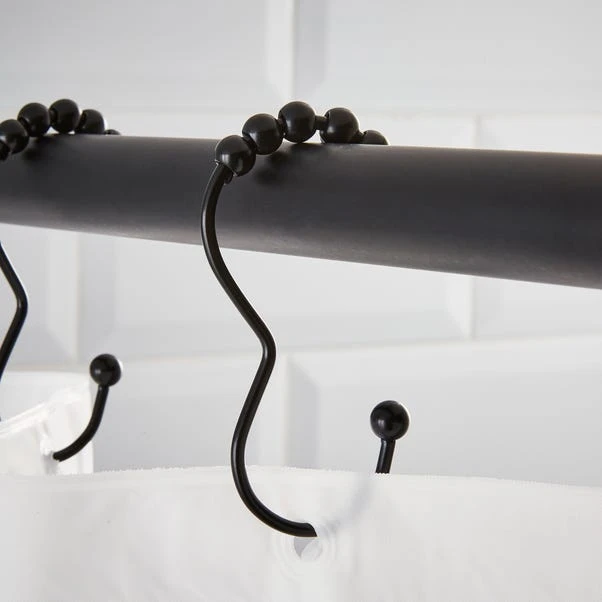 Sporting a contemporary open shape, these shower curtain rings are supplied in a pack of 12. Crafted from durable metal, these rings are comprised of roller beads to help the curtain glide when in use. Designed to fit standard shower curtains, these rings are available in chrome or matt black.