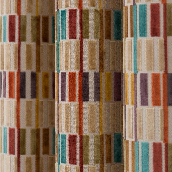 The modern aesthetic of this curtain is the perfect fusion of modern aesthetics and classic luxury, making it a striking addition to your home decor. Crafted with meticulous attention to detail, the curtain features a mesmerizing geometric pattern in sumptuous cut-velvet, adding a touch of luxurious texture to your interiors. The recycled polyester lining ensures a beautiful drape, protecting the face fabric from fading. And with the easy-to-hang eyelet header, you’ll have these curtains up and ready in no time. Transform your living space with geometric opulence and embrace the modern sophistication that these curtains effortlessly exude.