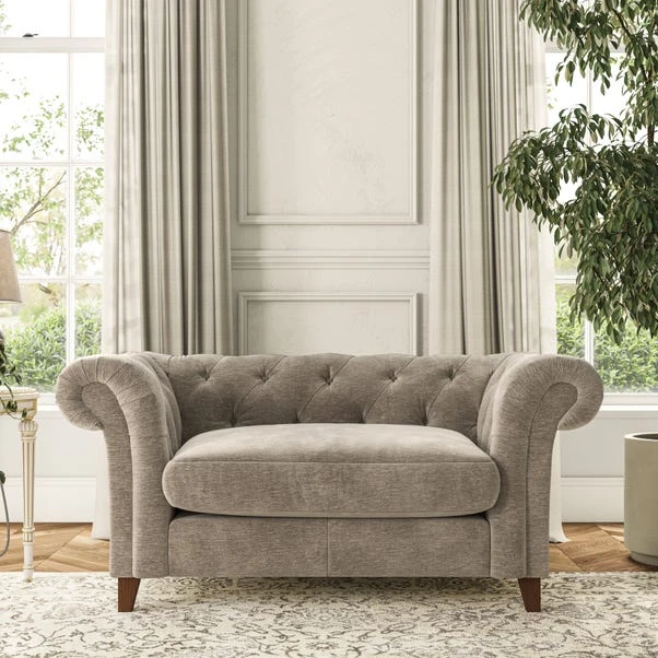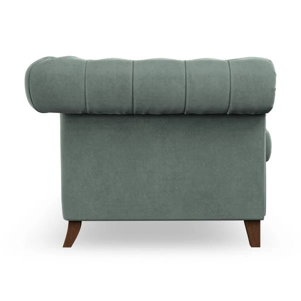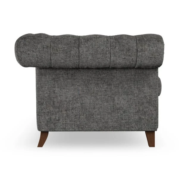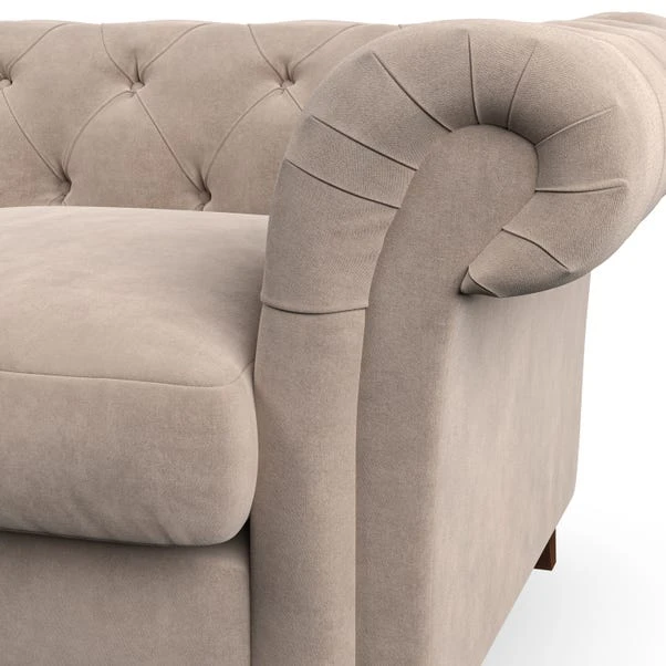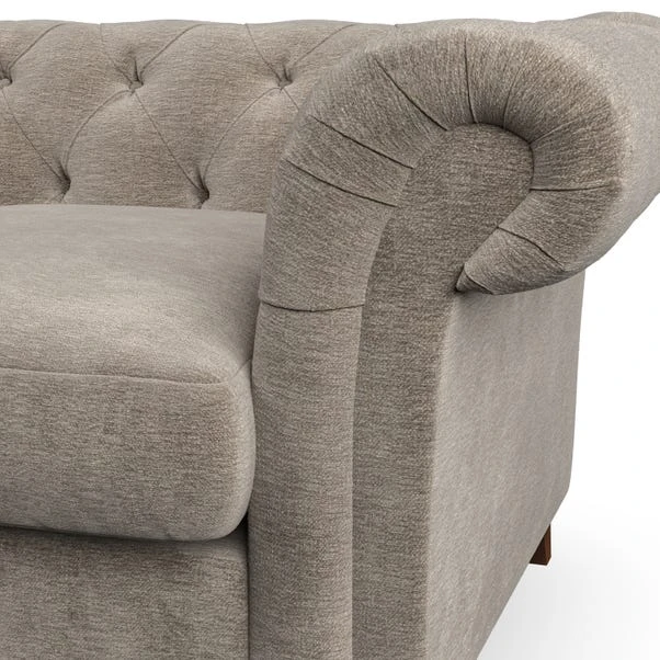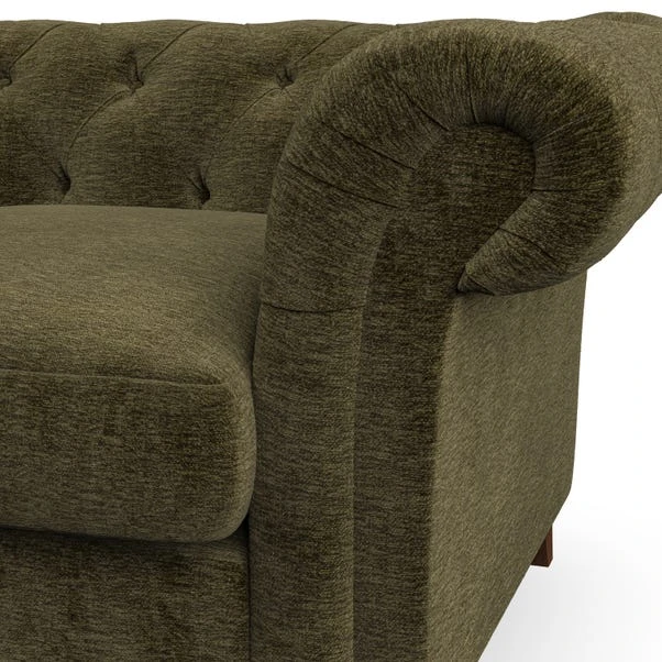 Featuring an authentic Chesterfield design with generously scrolled arms and striking deep buttoning, this chair adds a touch of sophistication to your living space. Built for both style and durability, it includes serpentine seat springs for lasting comfort and a Superloop sprung back for superior support. You can choose between a supportive, low-maintenance foam seat or a more relaxed ‘Qualofill Blue’ fibre seat, which is made from 100% recycled polyester, including post-consumer and ocean plastics. The self-sewn seat cushions lend a contemporary edge to the traditional design, while the hardwood legs, available in two finishes, offer a customisable touch and are easy to fit.