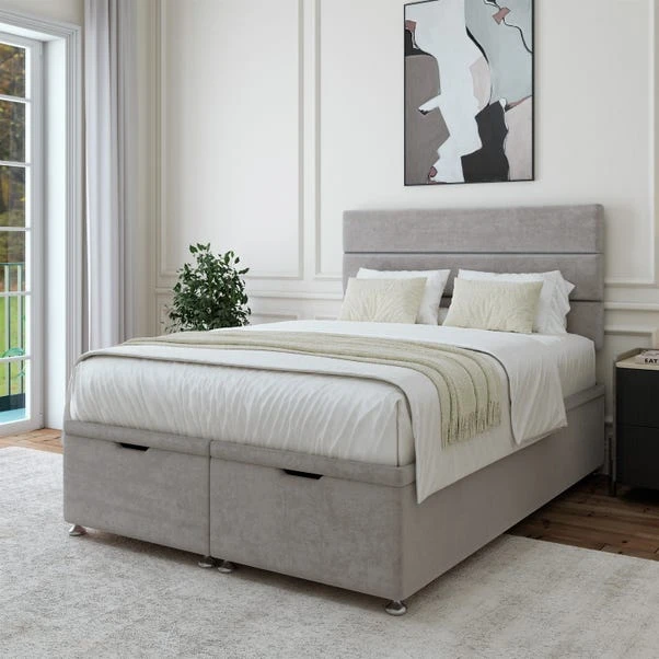 Upholstered in luxurious chenille fabric, this ottoman base offers a refined aesthetic while serving as a functional storage solution. The solid platform top provides durability, and the ottoman design features a generously sized hidden compartment, perfect for keeping bedding, linens, or other items neatly organised.