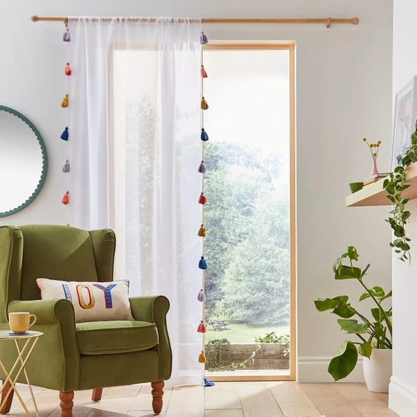 Enhance your home with the elegance and charm of these beautiful Voile Curtains, meticulously designed to bring a touch of privacy, a soft, ambient glow, and a sense of enchantment to your living spaces. The light-filtering feature filters excessive light and creates a serene ambiance into your home. The curtains allow for a diffused natural light to grace your rooms, providing a tranquil atmosphere that is both soothing and inviting. The playful tassel accents add a delightful touch of personality to your windows and inject elements of vibrant hues and life into every corner. The curtains feature a versatile slot top design, offering you endless possibilities for their use. They gracefully adorn your windows, allowing a gentle breeze to pass through while maintaining your privacy. Additionally, they can be ingeniously employed as room dividers, helping you create distinct spaces within your home with the help of room panels. We understand that every home is unique, which is why our Curtains are available in a range of sizes. Whether you need a petite panel for a cosy nook or a grand drapery for a spacious living room, we have the perfect size to fit your requirements.