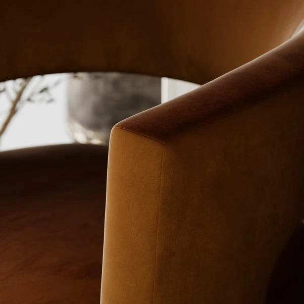 This fully upholstered accent chair offers a bold and stylish pop of colour with its luxurious velvet finish. No assembly is required, making it an effortless addition to any space. The on-trend hue adds vibrancy to your room, while the easy-to-wipe clean fabric ensures practical use without sacrificing style.