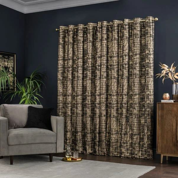 A rich, luxuriously soft feel fabric has been adorned with a metallic print, perfect for giving your home interior a glamorous look. The polyester lining will help preserve the design and front fabric from fading, making these curtains long-lasting. Complete with a modern eyelet header, these curtains are designed for use with a curtain pole. Coordinate the curtains with the matching cushion for a stylish room look.