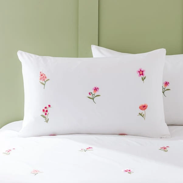 Bring a floral touch to your bedroom decor with this charming duvet and pillowcase set embroidered with delicate flowers set against a pristine white. Made from recycled polyester, the bedding set is machine washable and quick to dry, so you don’t need to trade practicality for style. Matching oxford pillowcases available to buy separately. Check out additional colourways available to buy separately.