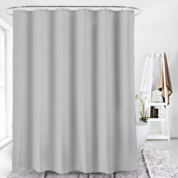 Add understated elegance to your bathroom with the Silver Shower Curtain. Made from water-repellent fabric, it features a weighted hem for stability and chrome-colored eyelets for a sleek, polished look. Easy to clean, this curtain is a practical yet stylish choice for everyday use.